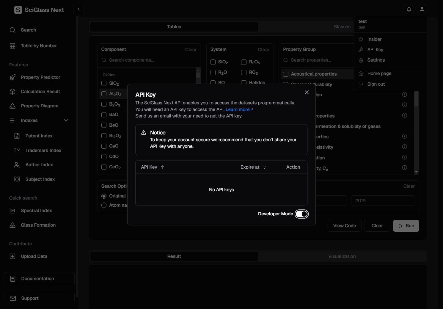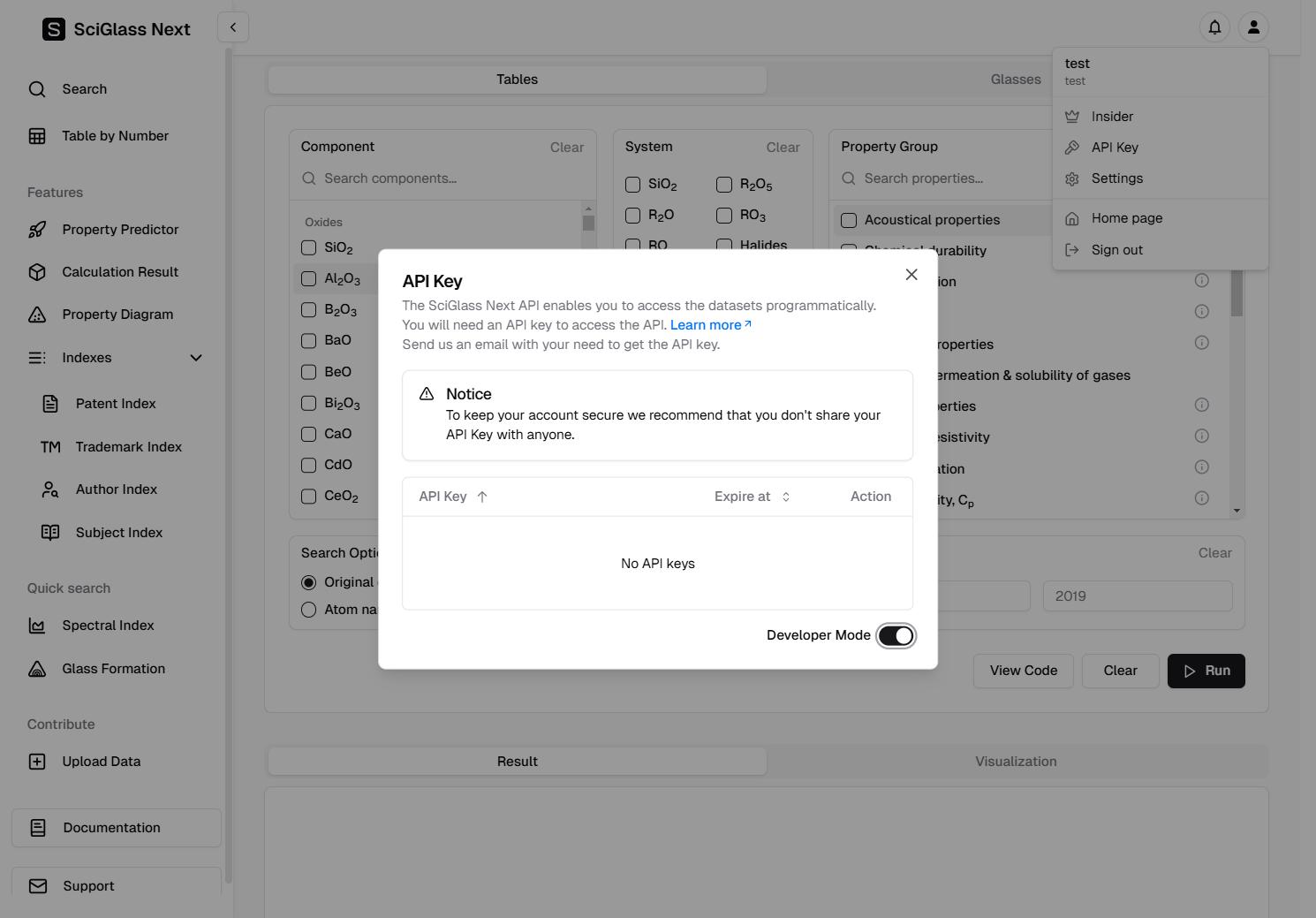 To make it easier for API access users to test your script or application, we have created a Developer mode function. Once you enable this mode from the API Key window (see below), you will be able to see the View Code button in the search panel.