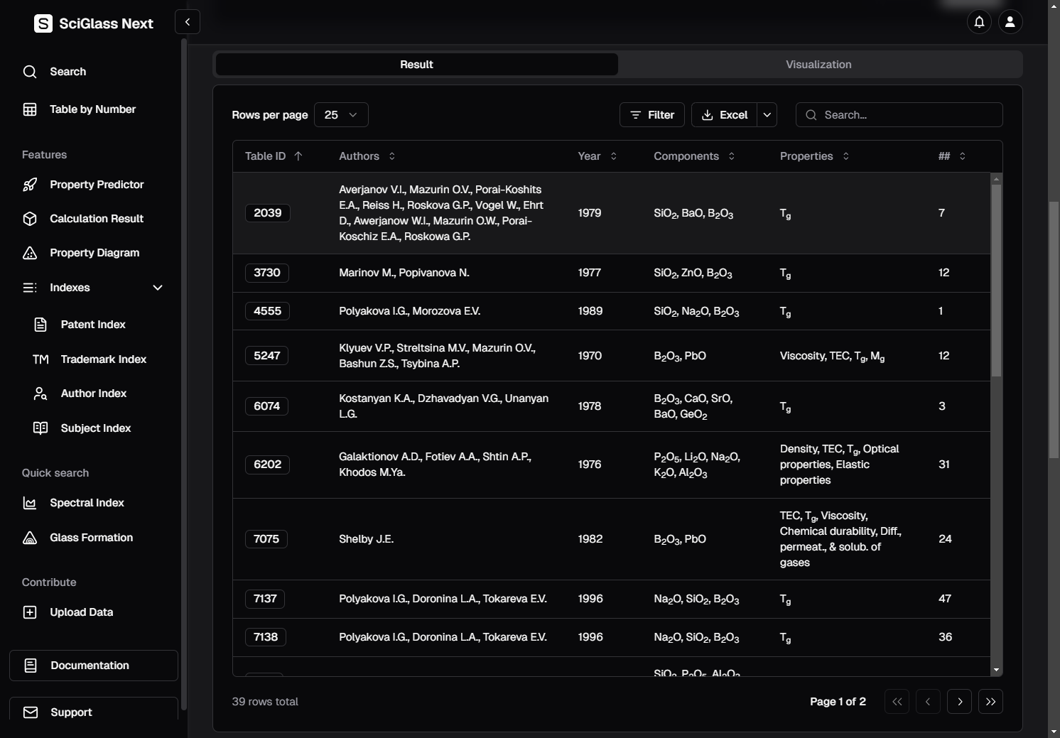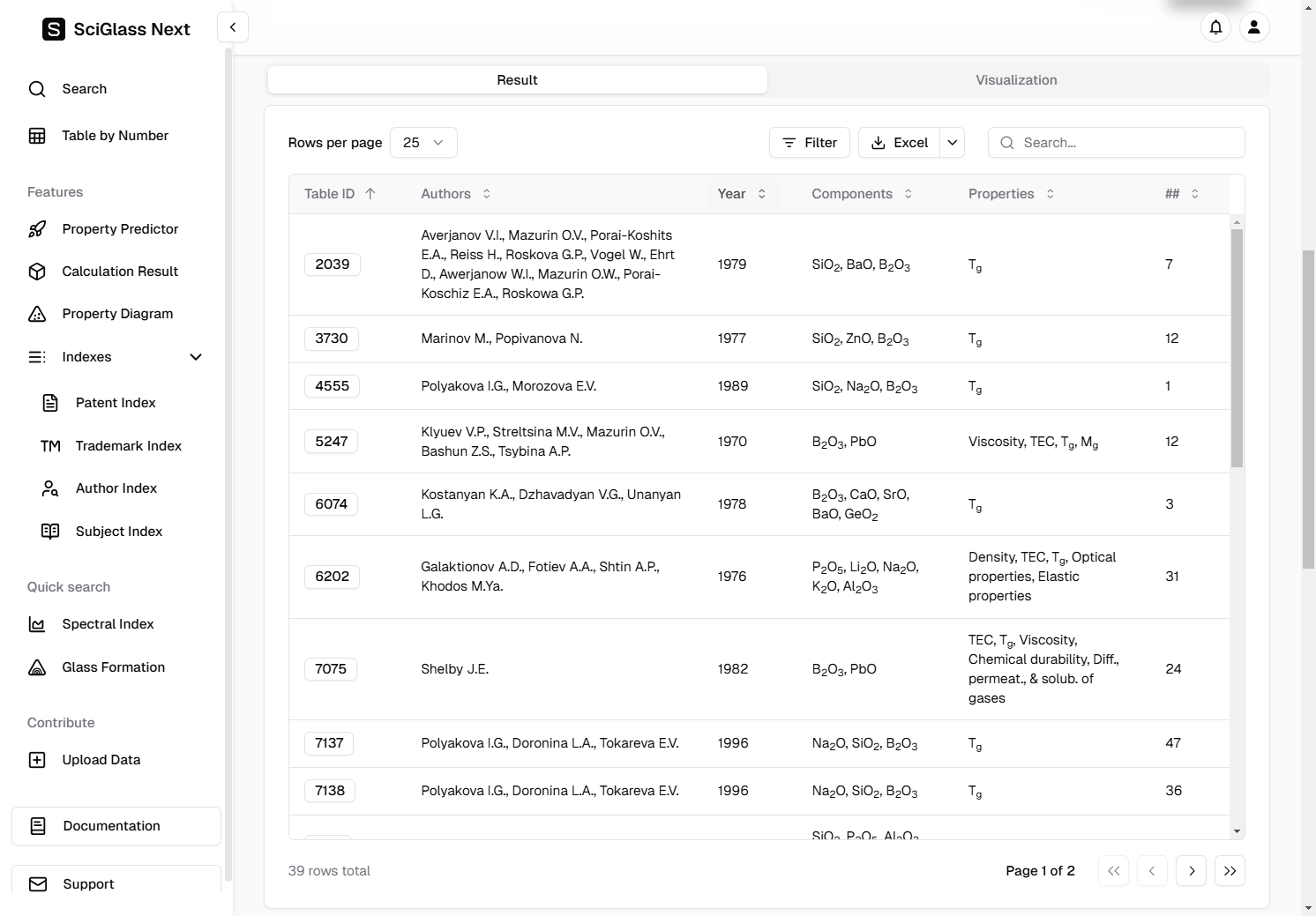 Click on the topic Tg values in phase-separated glasses 39 in the Paragraph column. (The number 39 at the end means how many tables are associated with this topic)