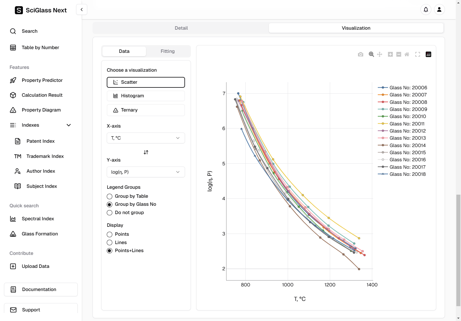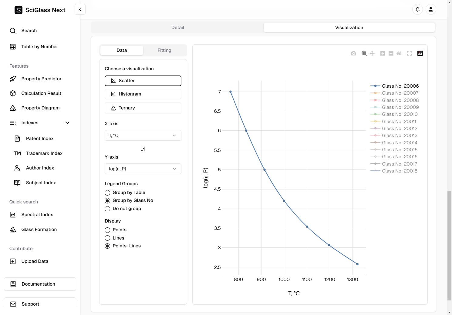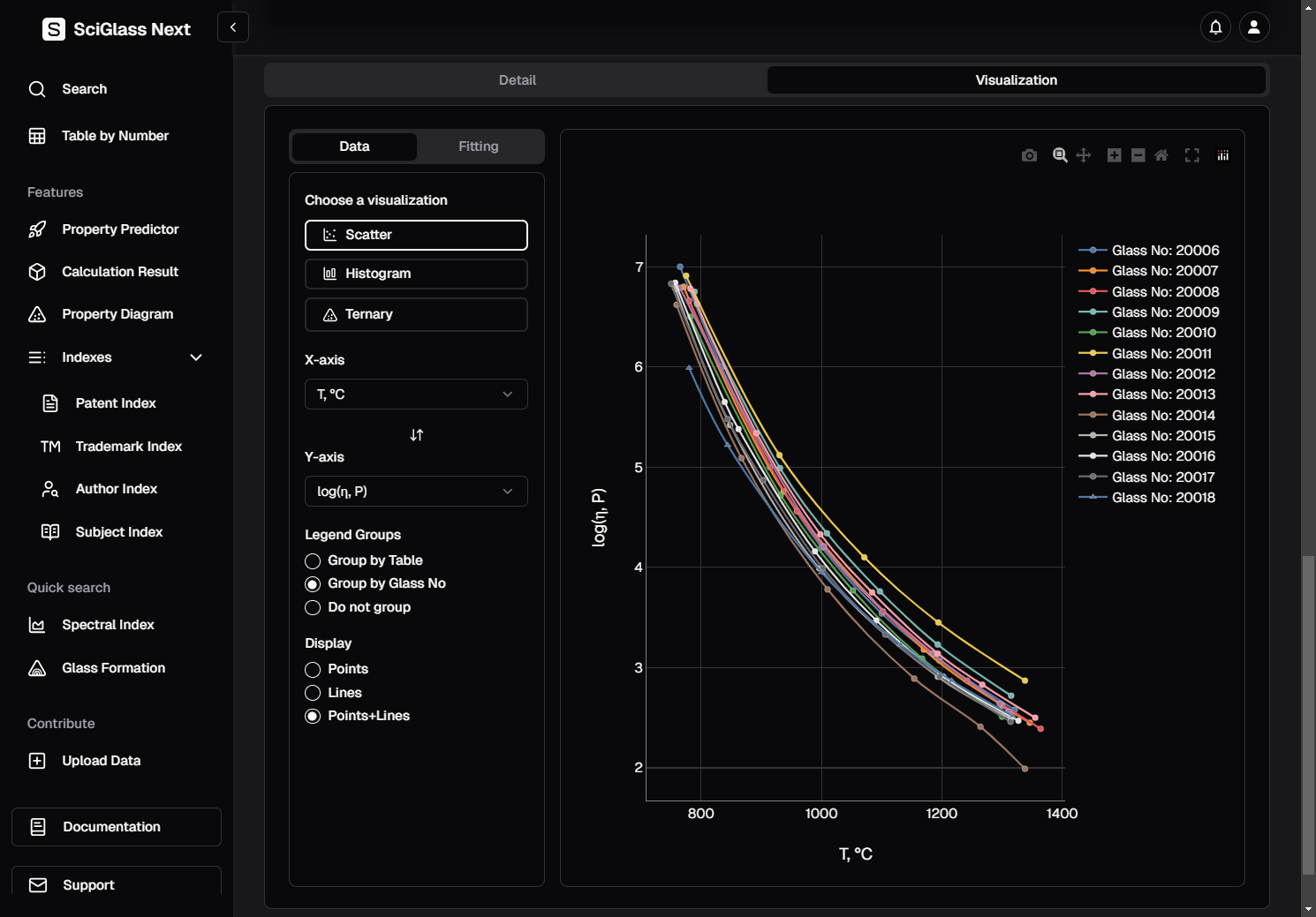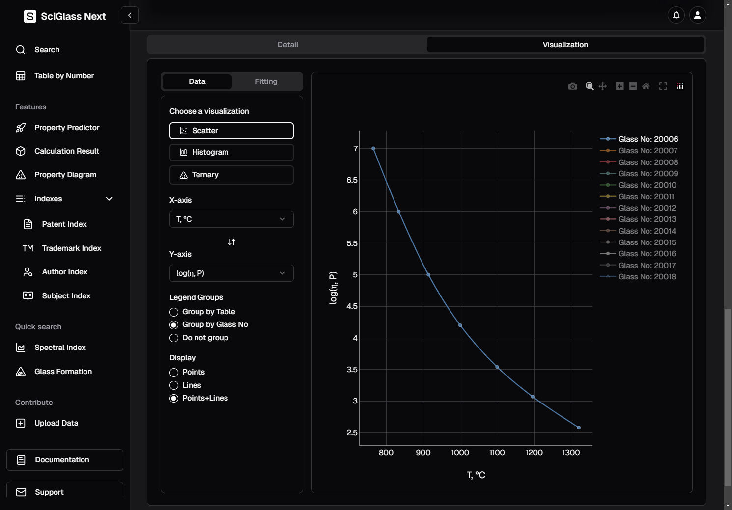 Now let us change the Legend Groups option to Group by Glass No, and the Display to Points+Lines to get a better view of each glass.