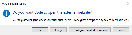 Click the Open button to open the authentication page in your browser. Log in with your SciGlass Next account, and