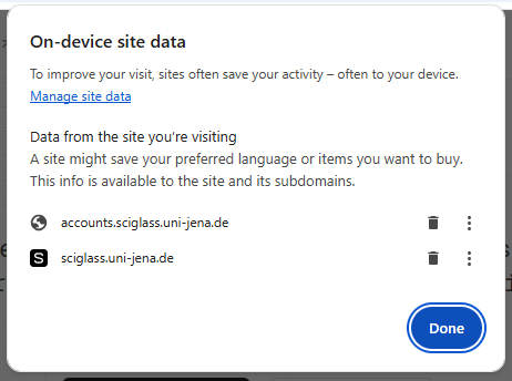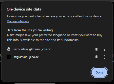 Clear the cache for the site and then click Done. You'll be prompted to reload the page to apply the changes.